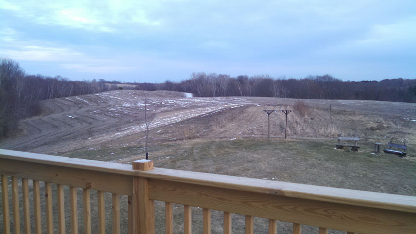 We think the snow is finally gone… 74 degrees today! This is the view from our deck looking out over the top of the hill. This is the hill that protects the cows from the west and north winds. But it’s pretty windy up by our house! Last weekend we separated the 3 larger calves from their moms. Wasn’t sure how that would go, but it went great! Somehow, the 3 calves and one mom separated so that we could put a temporary fence between them and the others. And soon, that mom separated from them enough to walk between her and the calves with the fence and it was done. We’ll leave them apart for a few weeks so they are weaned. We are waiting for three of the moms to have their calves some time in April. Glad the weather is warming up for them!