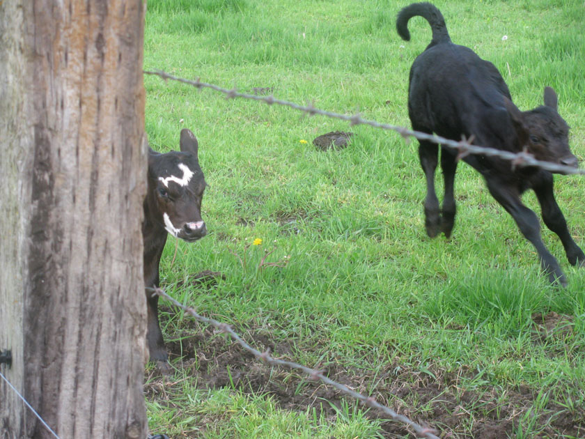 Another baby born on a Saturday! May 2nd- it was a beautiful Spring Day too! What a cutie! This one wasn’t such an interest to the other calves anyway. Guess they got that out of their system. So fun to watch the newborns try out their legs- running, jumping and hopping around. Bet that feels good! Herd is up to 10 now.