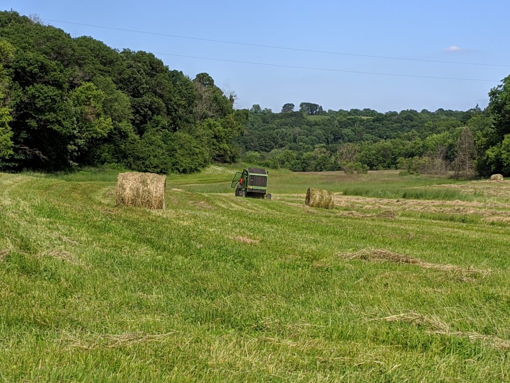 It’s the end of June and it’s been raining every few days. No window yet for haying! Since we are out of hay, we are cutting as needed and feeding them the grasses from our hayfields. And they love it! It’s alot more work for us, though! We have good pastures this year because of all the rain. But, sooner or later we have to get some hay bales out there when the pastures need a rest. Our cows are filling out nicely and really look good! So happy to watch them enjoy the green grasses. The babies are growing so fast and are happily tearing around having fun! Love the country life!