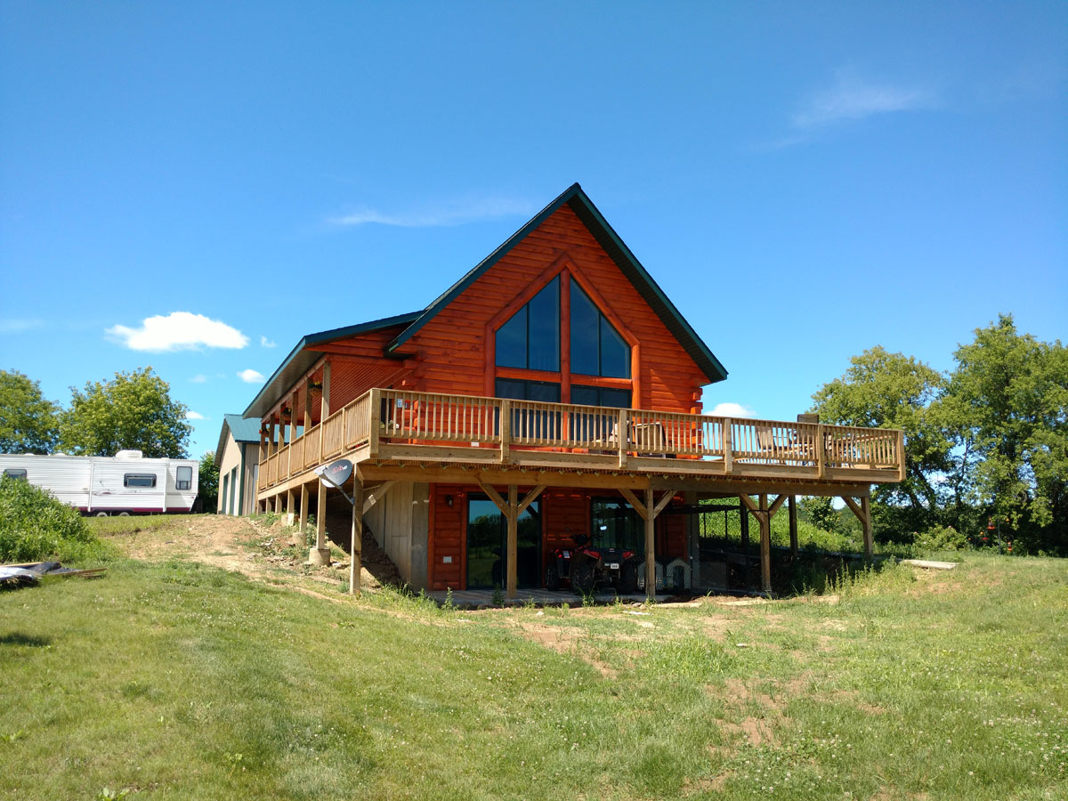We look forward to enjoying the summer in our new home! Gathering family for dinner and enjoying the deck on a warm summer night is what it’s all about! But, let’s not forget about the farm work. A few weeks ago we went to a local country music festival and it happened to be time to bale hay. Since our baler wasn’t working the best, we decided to hire out the raking and baling. We got 25 large round bales for first crop. Very nice hay! And it was wonderful to come home and find it all done! That was worth it! Still waiting for one more calf, but think that maybe she’s not pregnant after-all. We will be getting the bull next week. The herd looks really nice now- guess that green grass really makes a difference! They are mowing down the paddocks and we are so glad that we fenced another section this Spring. Our son Dusty took down the old shed that was beside the new one last week. Mowed it down with the tractor and loader. It’s quite a mess to clean up, but we’ll be able to drive around the pole shed instead of having to move things and drive through it. And the summer projects continue!